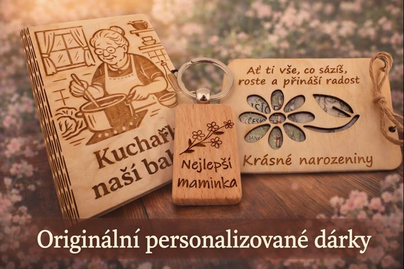Mnohé dárky lze personalizovat jménem, datem nebo vlastním textem, aby byl dárek opravdu jen a jen pro ni.