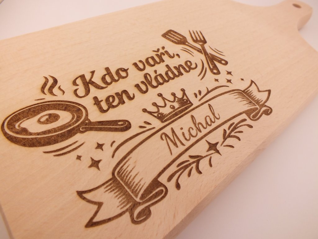Originální, osobitý a praktický dárek, který potěší každou šikovnou kuchařku i kuchaře! Prkýnko je vyrobeno z kvalitního bukového dřeva a ozdobené gravírovaným textem či obrázkem  Díky tomu se z obyčejného kuchyňského náčiní stává jedinečný kousek s osobním dotekem.