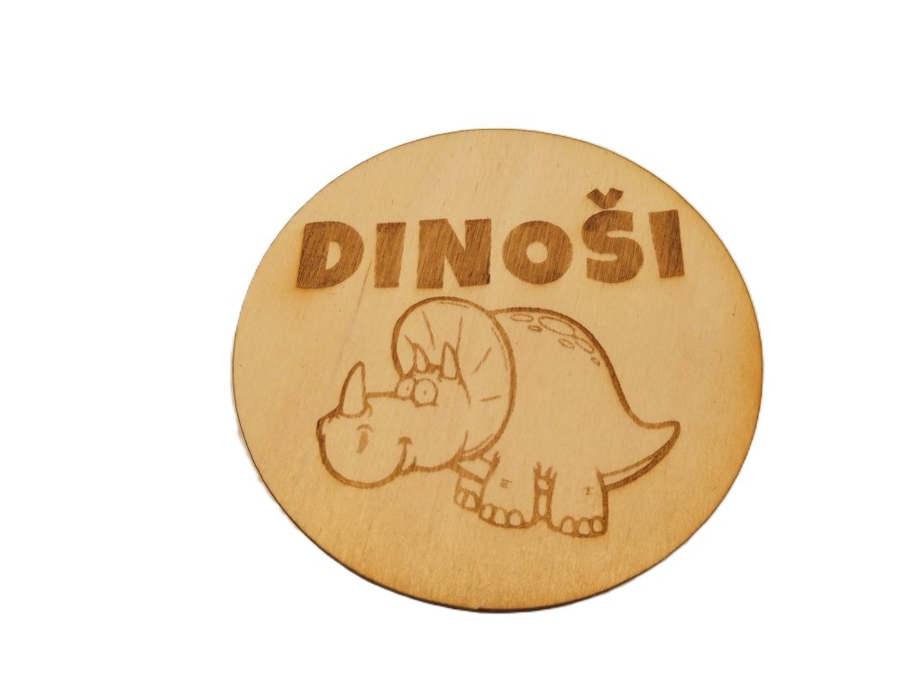 Dřevěná cedulka s vygravírovaným názvem hraček