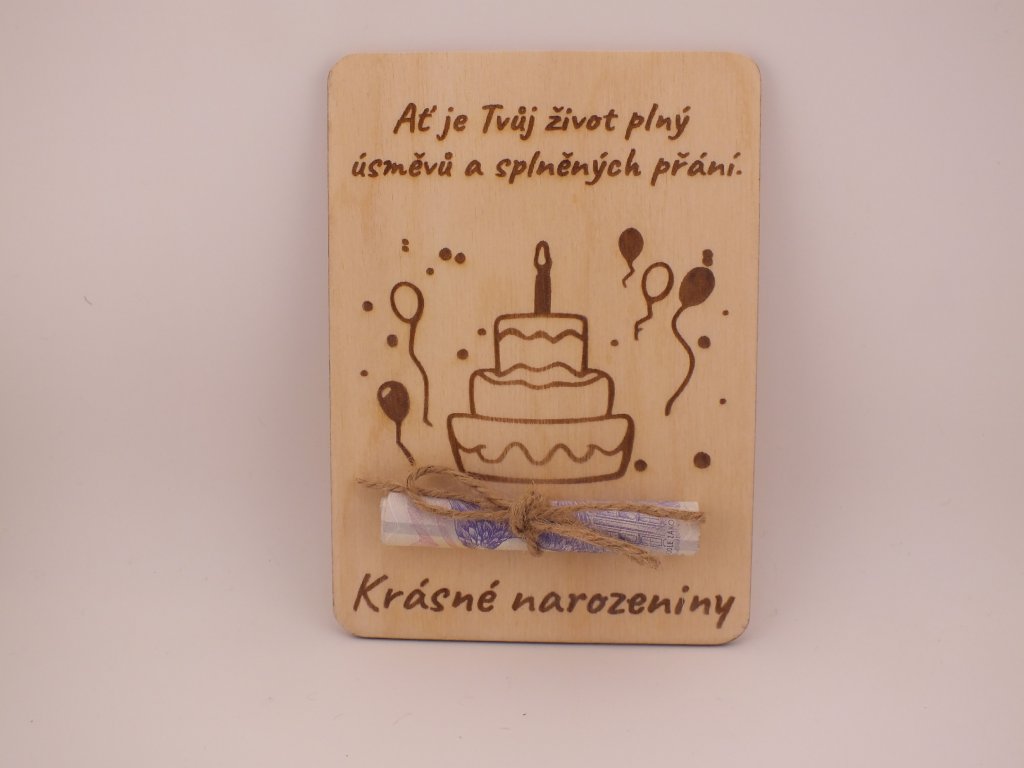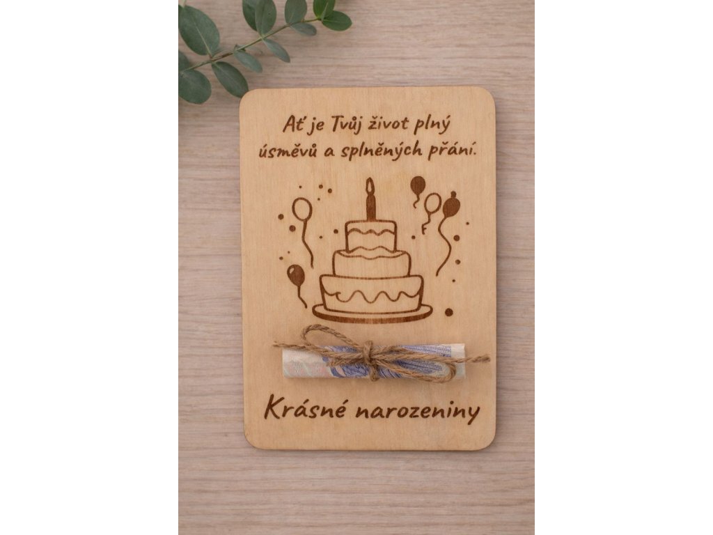 Dárková dřevěná karta na peníze