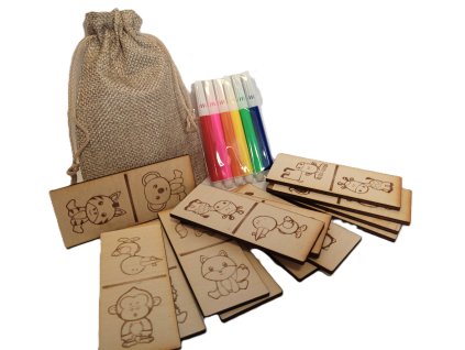 Dřevěné gravírované domino – kreativní sada Originální domino vyrobené z březové překližky o síle 3 mm. Sada obsahuje 15 kartiček o velikosti 9 × 4 cm, zdobených gravírovanými...