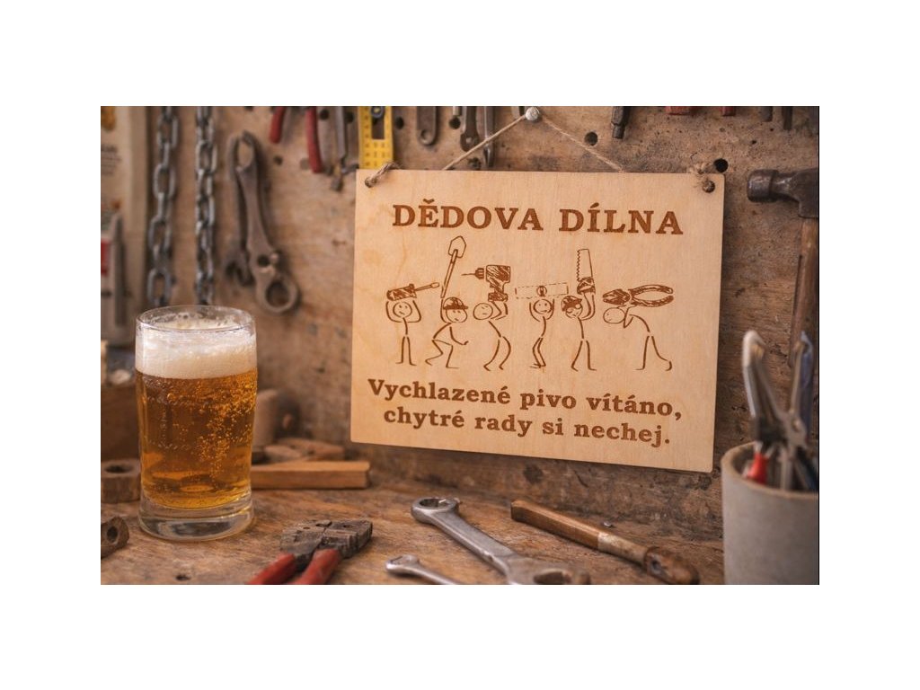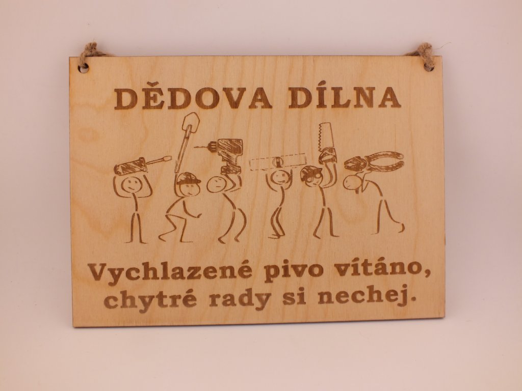 Dědova dílna – dřevěná cedulka s humorem