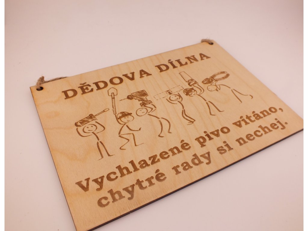 Dědova dílna – dřevěná cedulka s