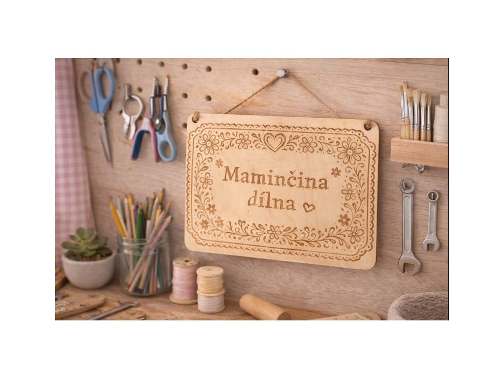 Dřevěná cedulka na pověšení - maminčina dílna