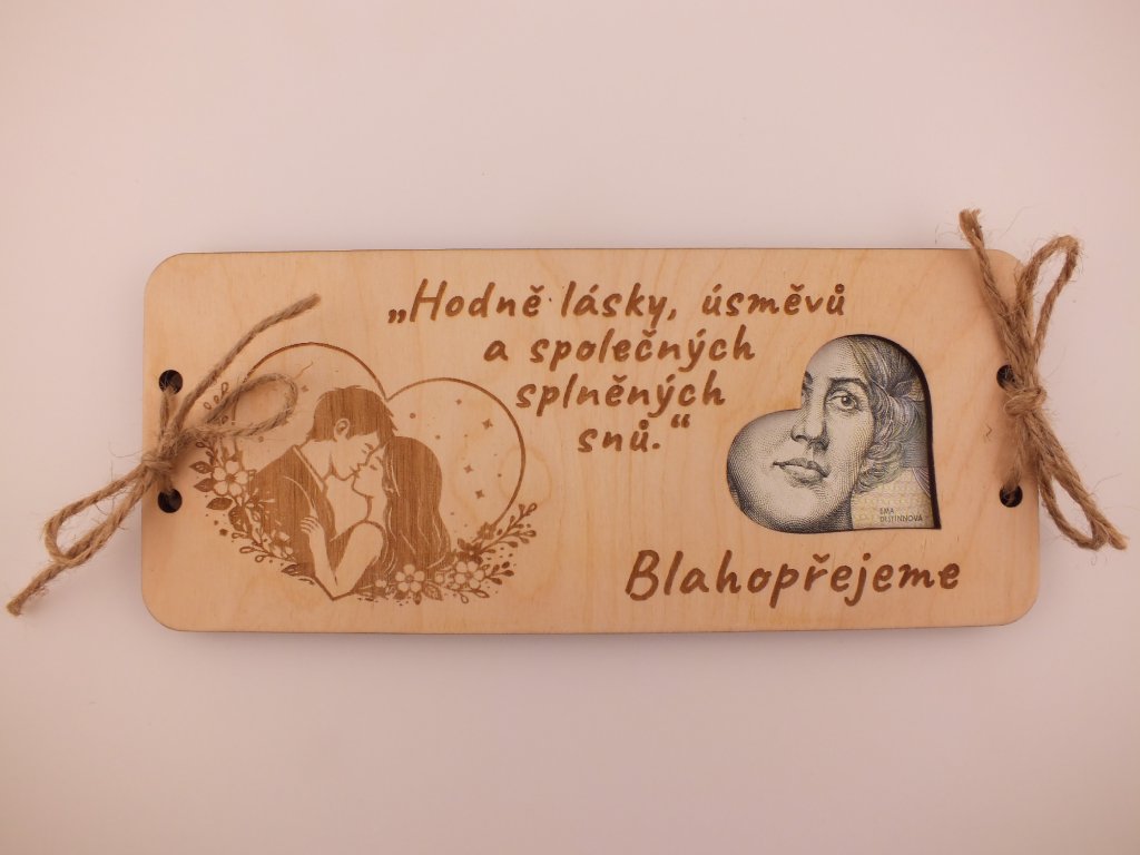 Poznámka: Peníze nejsou součástí balení – posíláme pouze dřevěnou obálku. 😊