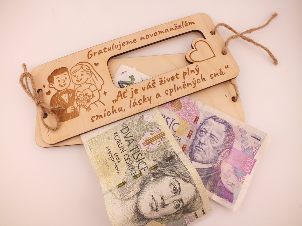 Poznámka: Peníze nejsou součástí balení – posíláme pouze dřevěnou obálku. 😊