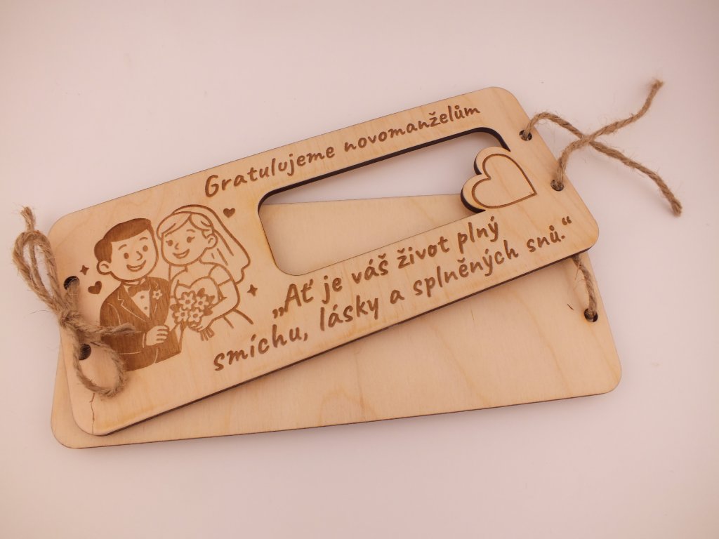 Dřevěná dárková obálka pro novomanželé