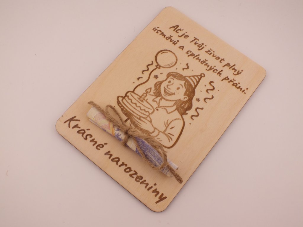 Díky možnosti personalizace (jméno, datum, krátký text nebo motiv) se z karty stává jedinečný dárek na míru – ideální k narozeninám, svatbě, výročí, promoci nebo jako poděkování.