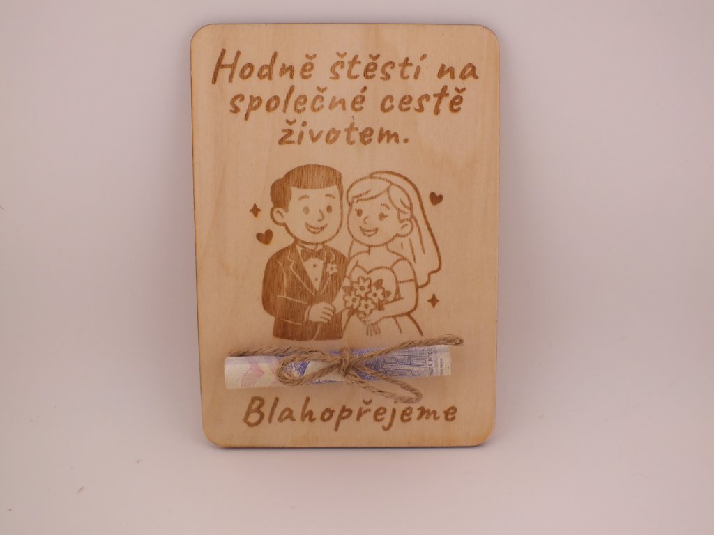 Dřevěná obálka na peníze – originální způsob, jak darovat bankovku s osobním přáním Stylová obálka vyrobená z březové překližky o síle 3 mm a velikosti 20 × 8 cm je skvělou...