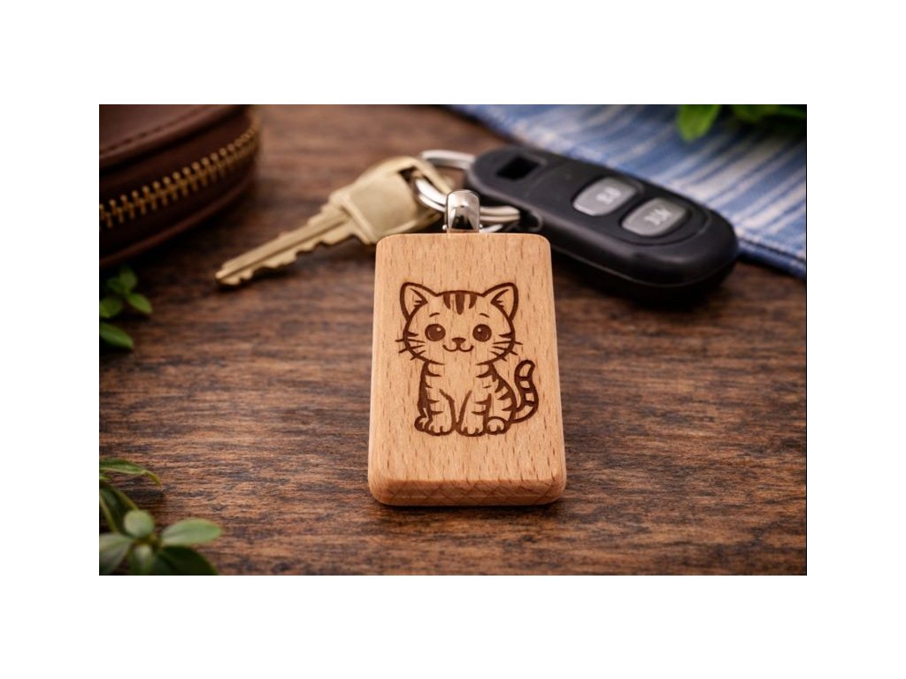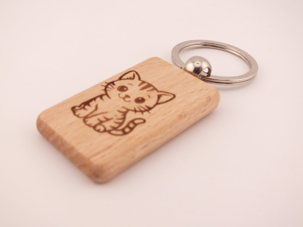 Dřevěná klíčenka s gravírováním – kočička