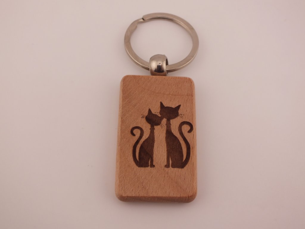 Dřevěná klíčenka s gravírováním – milovníci koček