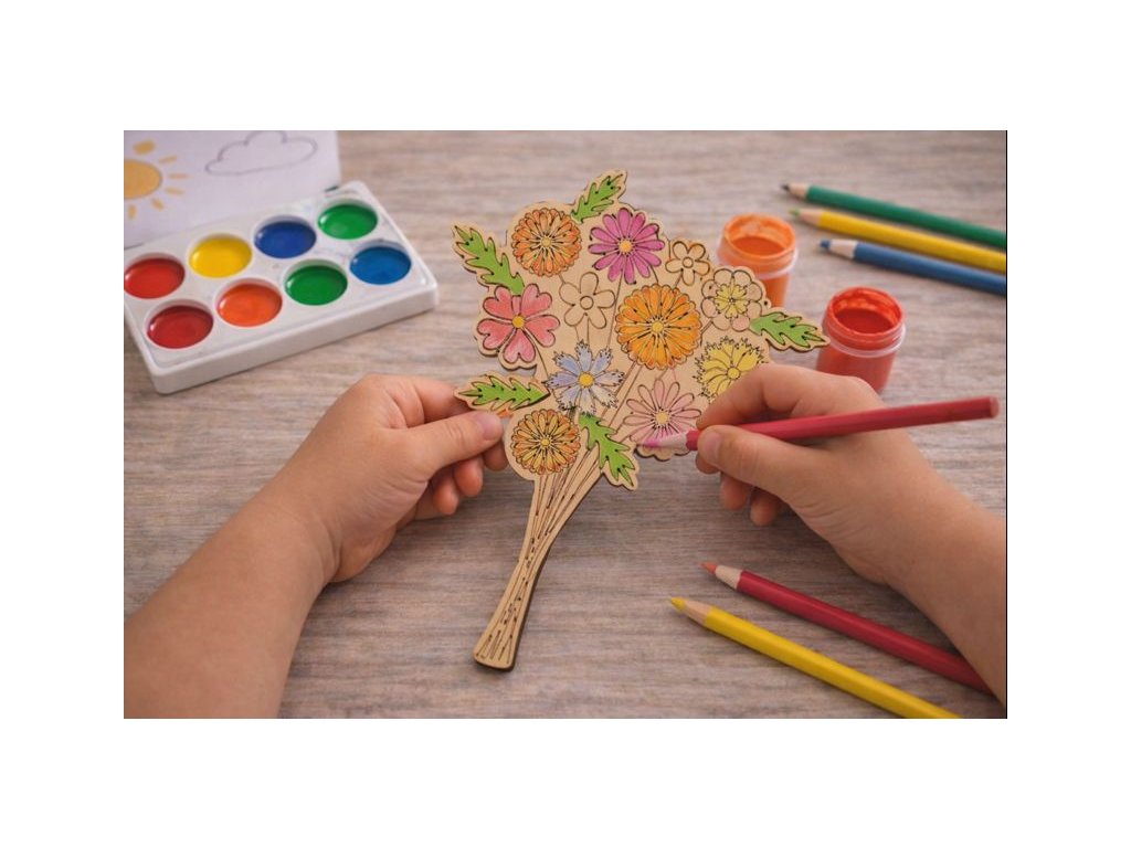 Roztomilé dřevěné květiny k domalování jsou ideálním dárkem pro babičku, maminku nebo paní učitelku. Děti si je mohou vybarvit a dozdobit podle vlastní fantazie, a tak vytvořit osobní a jedinečný dárek, který zahřeje u srdce.