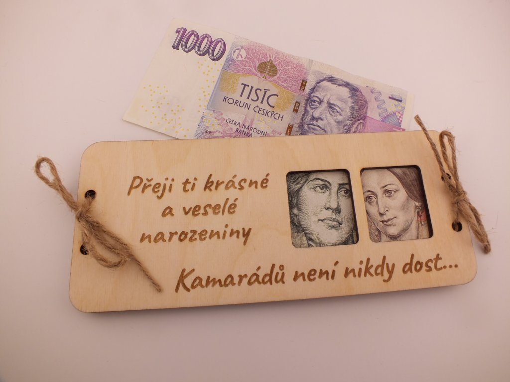 Poznámka: Peníze nejsou součástí balení – posíláme pouze dřevěnou obálku. 😊