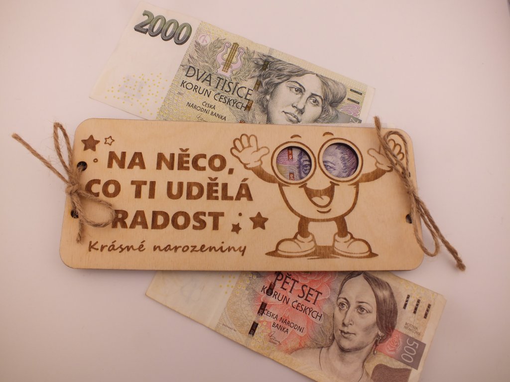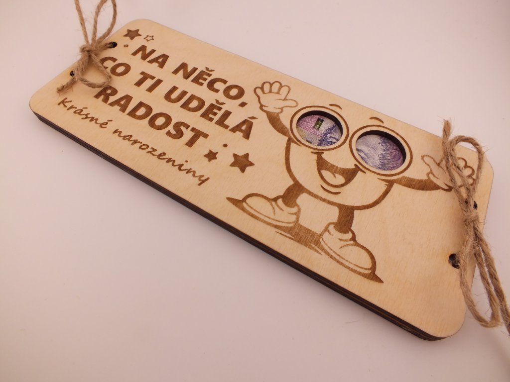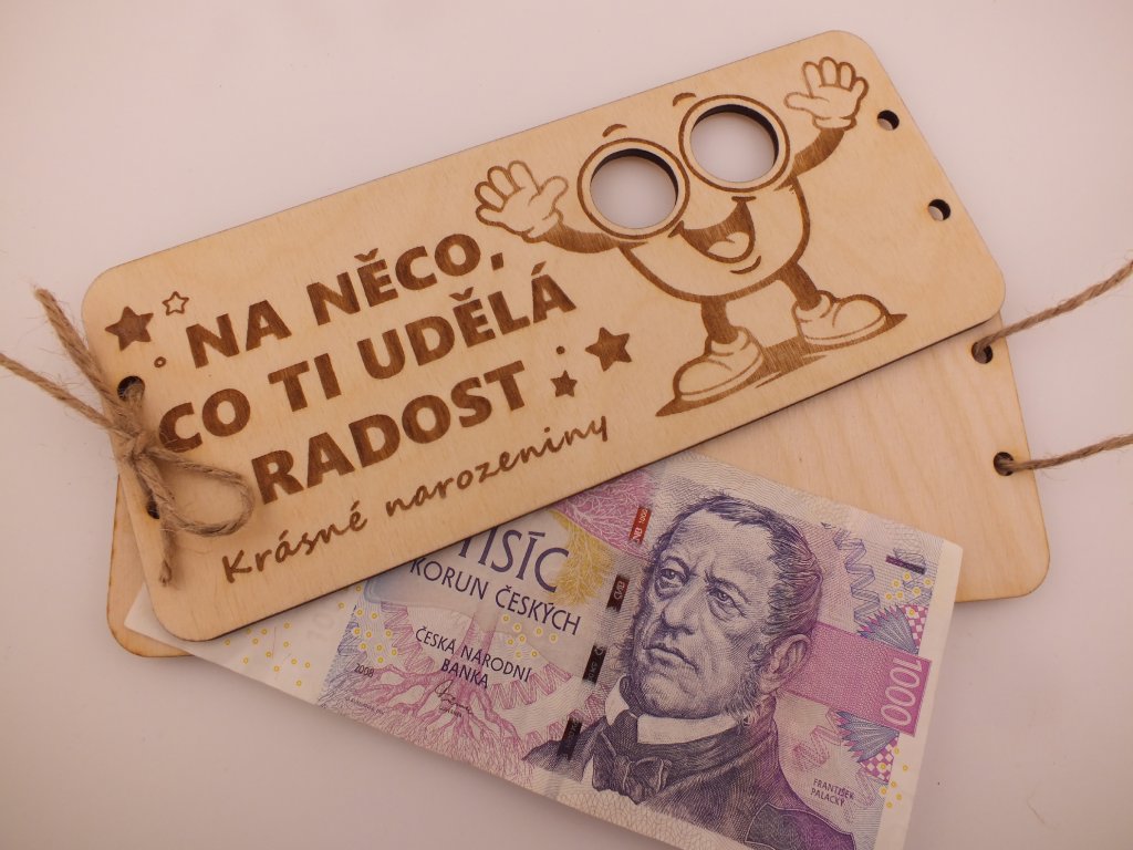Poznámka: Peníze nejsou součástí balení – posíláme pouze dřevěnou obálku. 😊