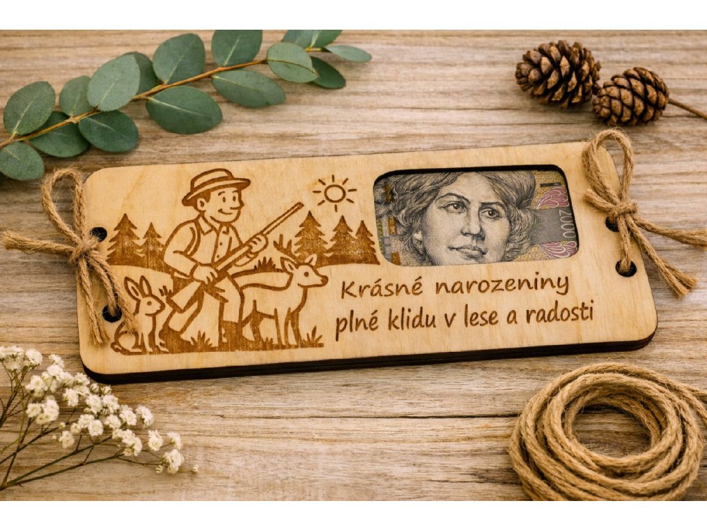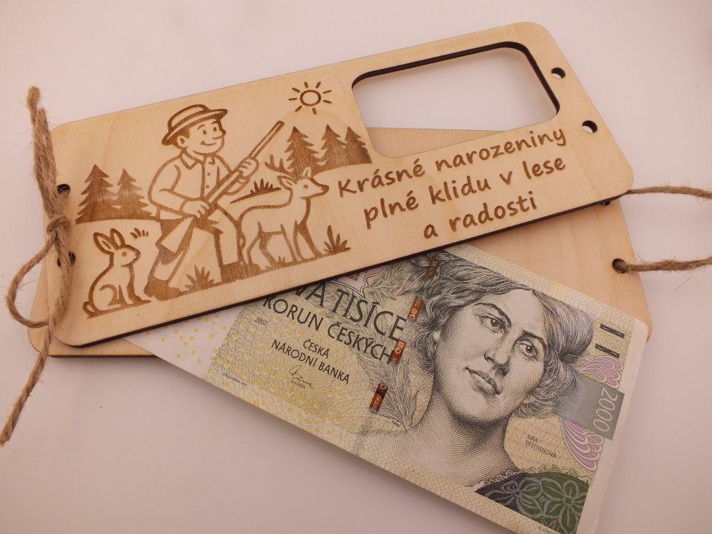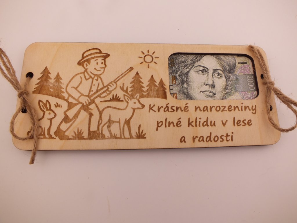 Poznámka: Peníze nejsou součástí balení – posíláme pouze dřevěnou obálku. 😊