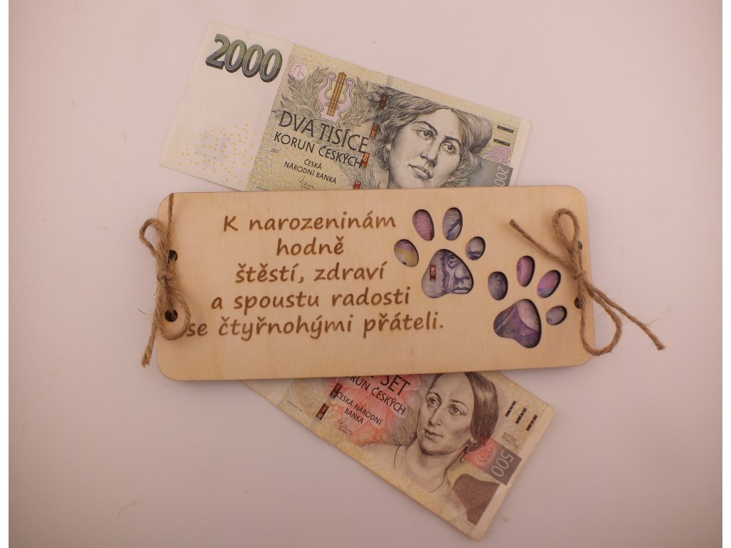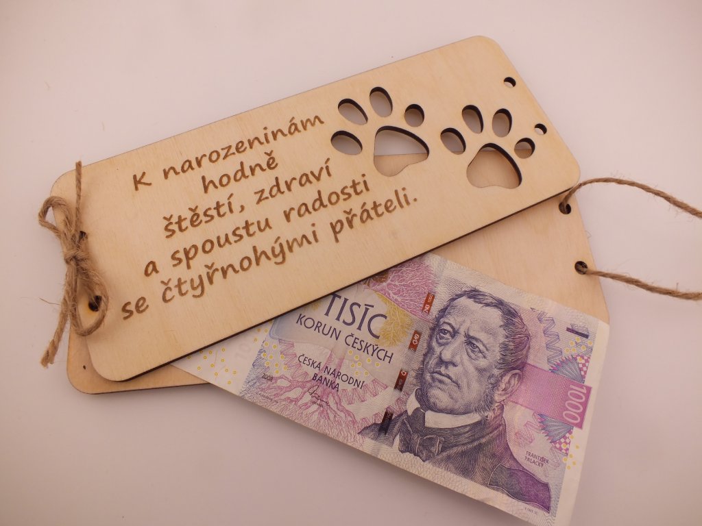 Poznámka: Peníze nejsou součástí balení – posíláme pouze dřevěnou obálku. 😊