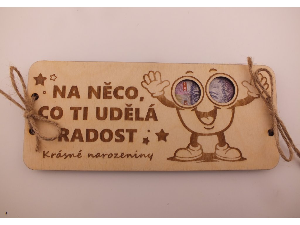 Poznámka: Peníze nejsou součástí balení – posíláme pouze dřevěnou obálku. 😊