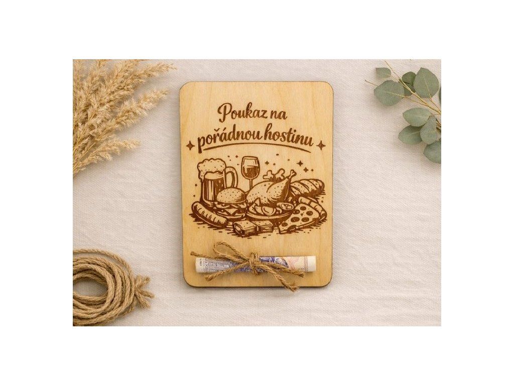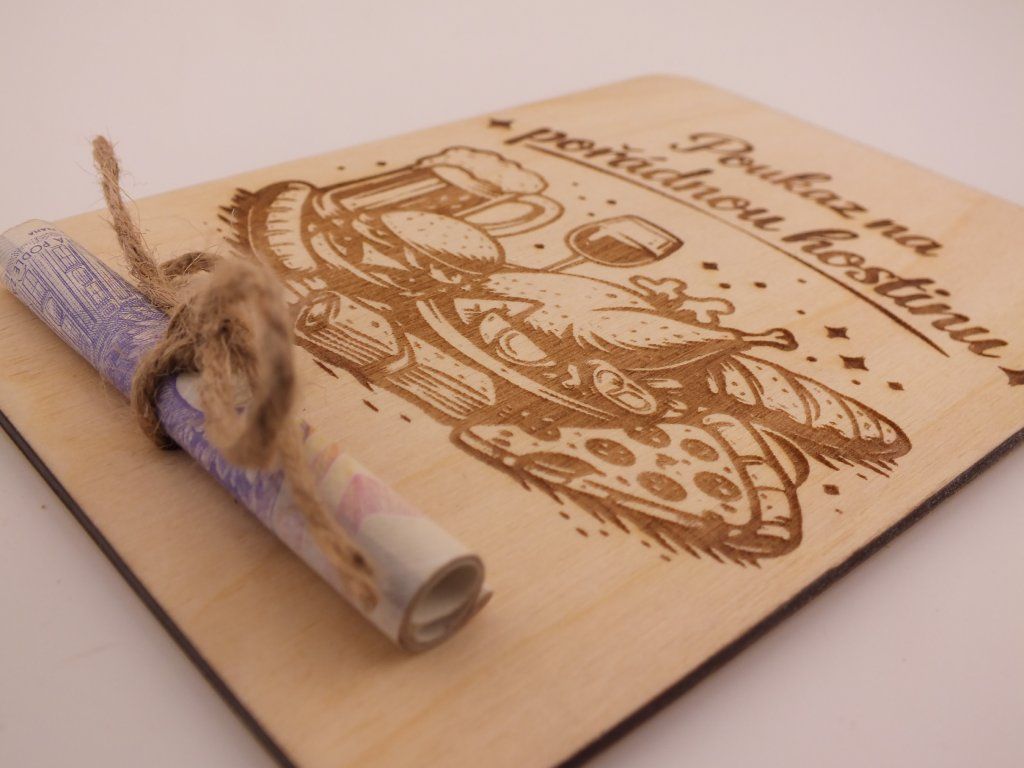 Naše dřevěná poukázka na peníze s gravírováním je stylový a osobní dárek, který zaručeně potěší.