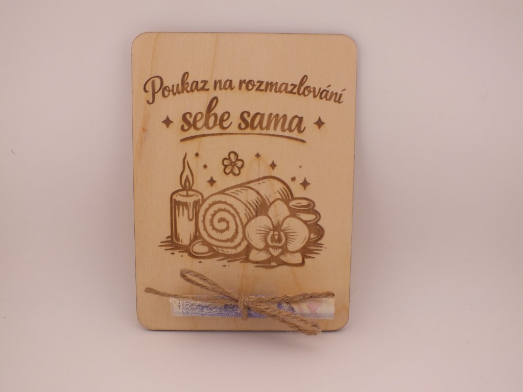 Naše dřevěná poukázka na peníze s gravírováním je stylový a osobní dárek, který zaručeně potěší.