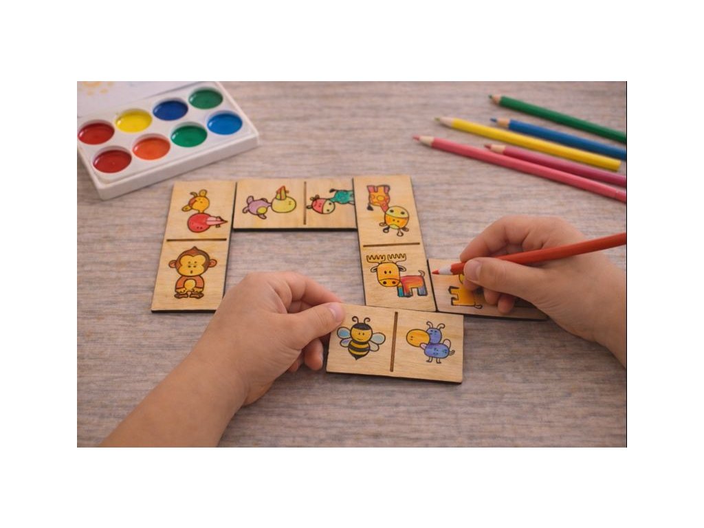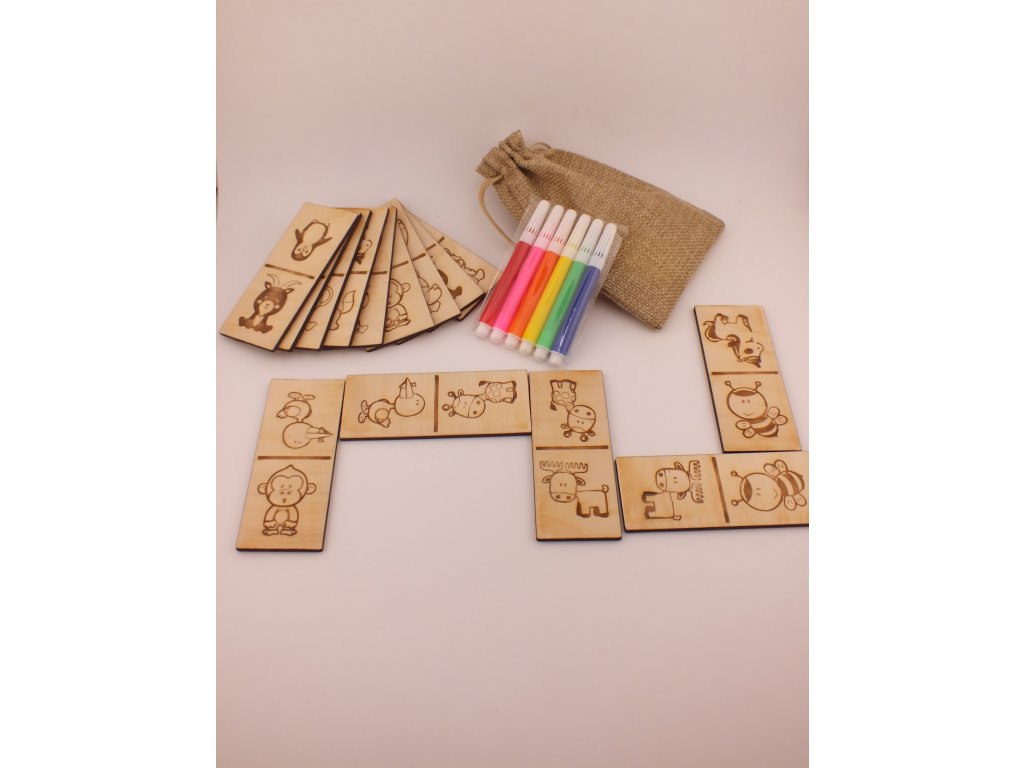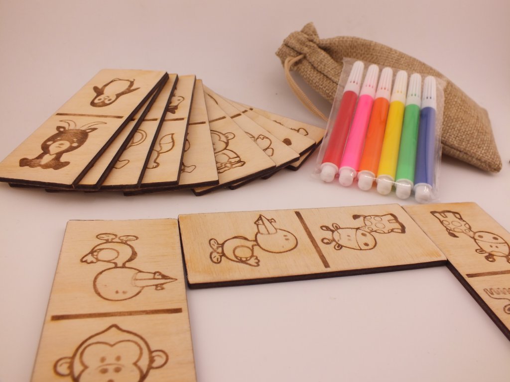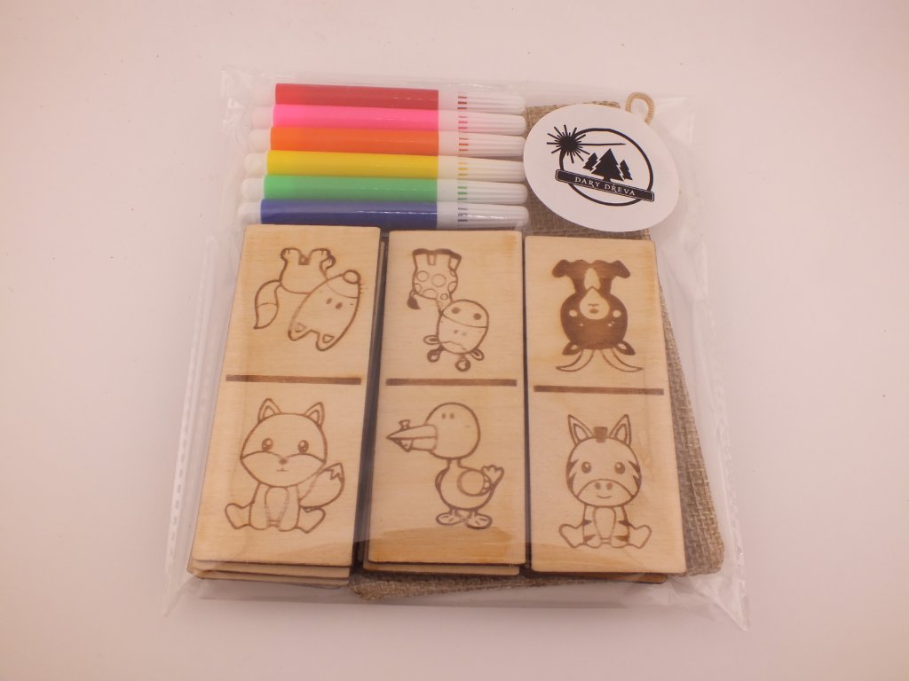 Originální domino vyrobené z březové překližky o síle 3 mm. Sada obsahuje 15 kartiček o velikosti 9 × 4 cm, zdobených gravírovanými motivy. Díky přírodnímu provedení je domino vhodné k dalšímu dotvoření – můžete jej domalovat barvami, fixy či pastelkami a vytvořit tak jedinečnou hru.
