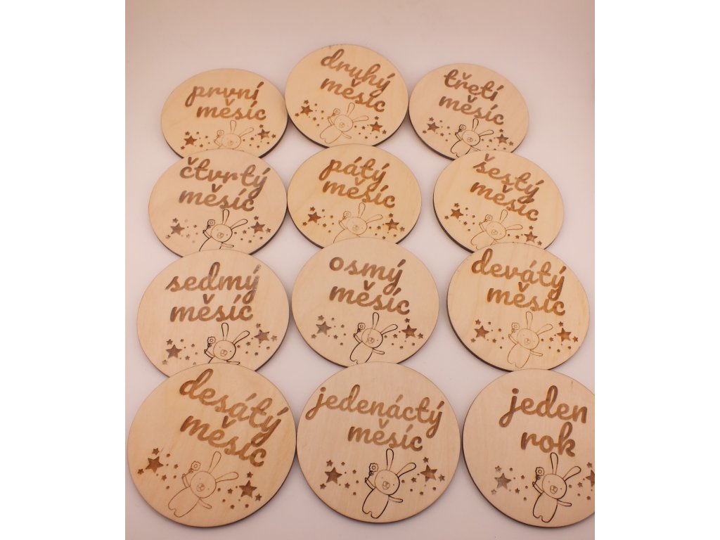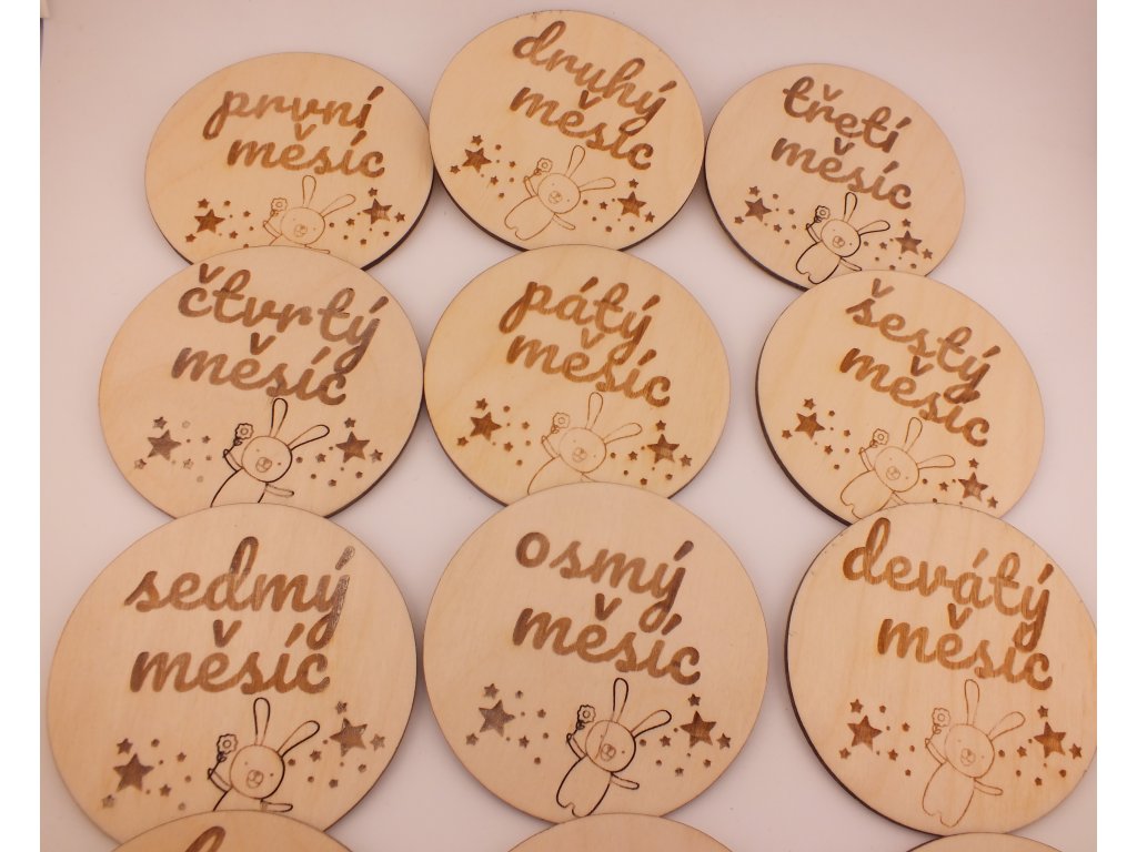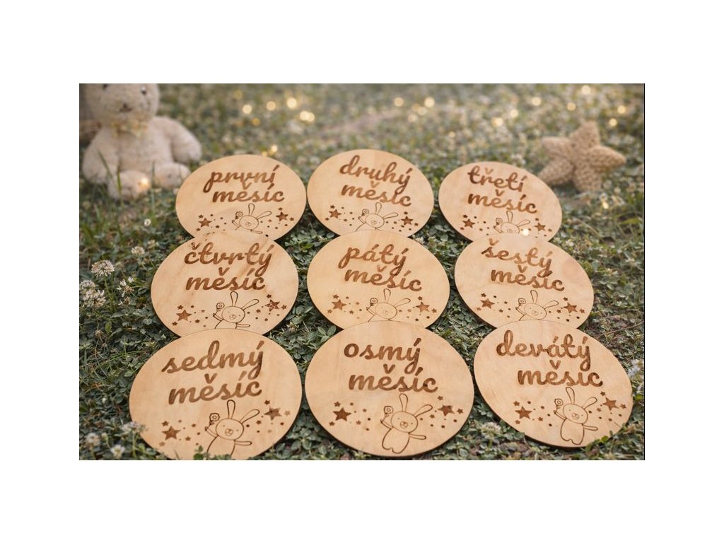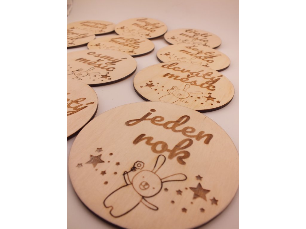 Milníkové kartičky z březové překližky o síle 3 mm a průměru 9 cm jsou krásným způsobem, jak zaznamenat a zvěčnit důležité momenty a pokroky vašeho miminka.