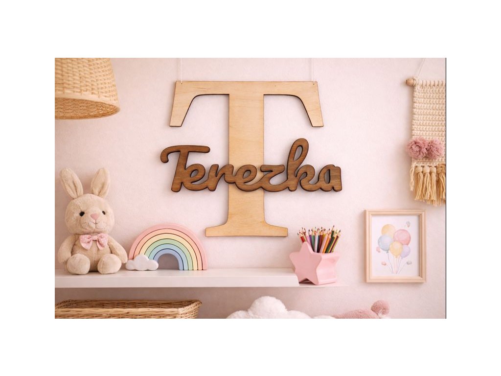 Originální dřevěné jméno vyřezané z březové překližky je krásnou a osobní dekorací do dětského pokojíčku. Jméno působí jemně, přírodně a zároveň moderně – skvěle se hodí nad postýlku, ke psacímu stolu nebo na zeď nad poličku.
