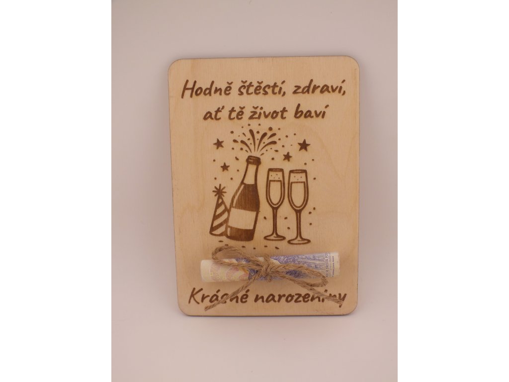 Dřevěná obálka na peníze – originální způsob, jak darovat bankovku s osobním přáním Stylová obálka vyrobená z březové překližky o síle 3 mm a velikosti 20 × 8 cm je skvělou...