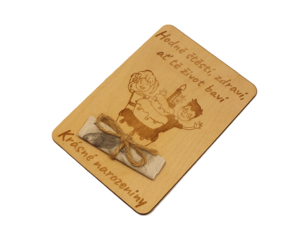 Dřevěné přání k narozeninám s možností vložení bankovky – originální a dekorativní dárek
