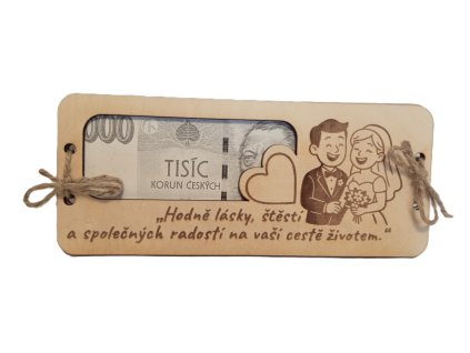 Dřevěné přání na peníze-gratulace novomanželům