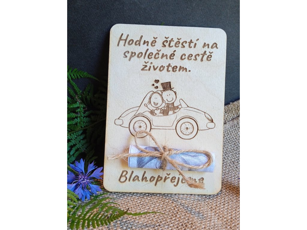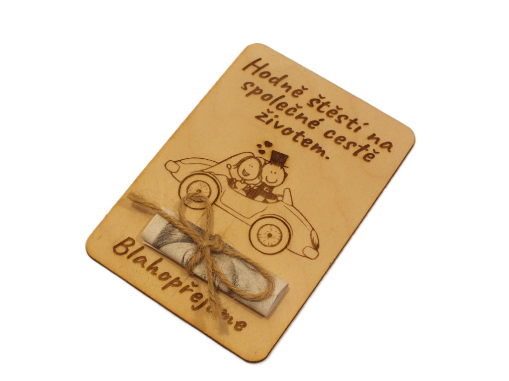 Dřevěné přání na peníze-gratulace novomanželům