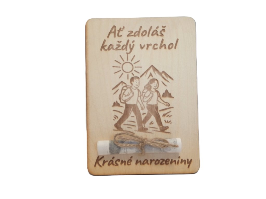Dřevěné přání k narozeninám s možností vložení bankovky – originální a dekorativní dárek