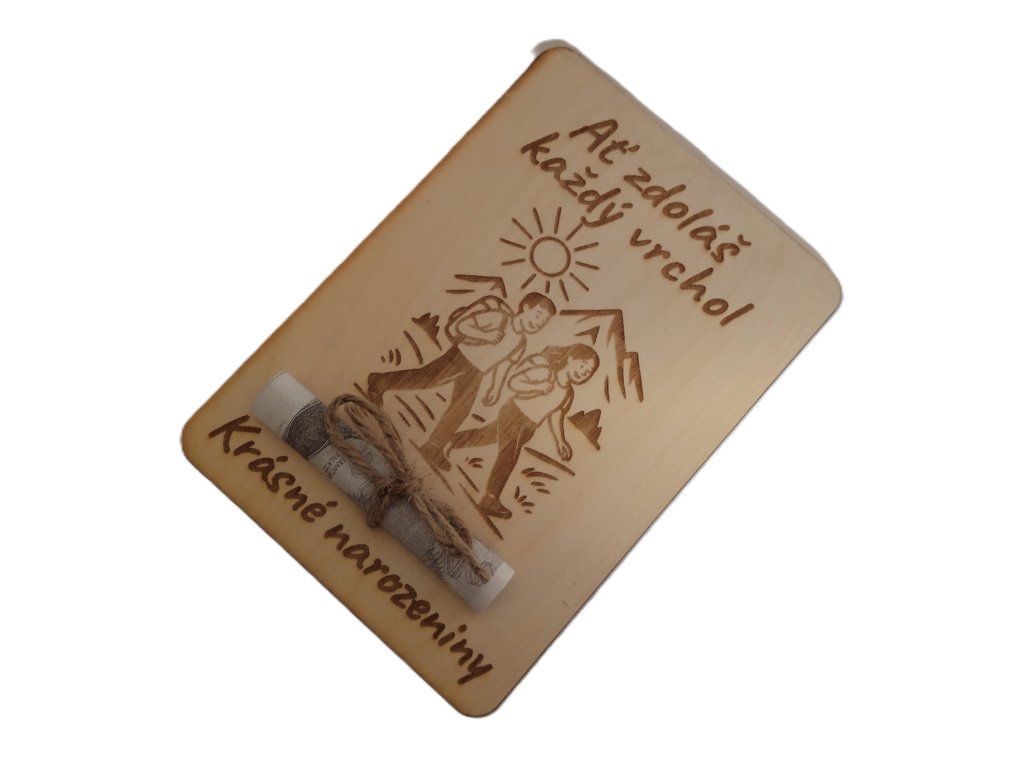 Dřevěné přání k narozeninám s možností vložení bankovky – originální a dekorativní dárek