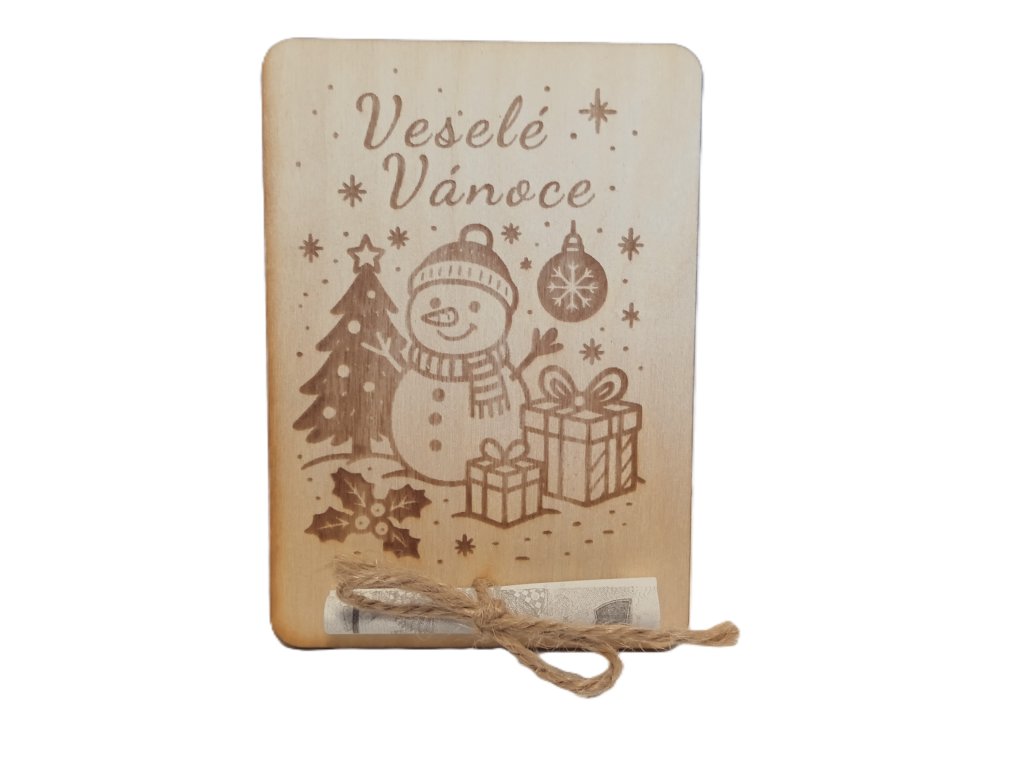 Darujte peníze netradičně a stylově! Toto přání z březové překližky o síle 3 mm a velikosti 14,5 × 10 cm je navrženo tak, aby šlo k němu jednoduše přivázat stočenou bankovku pomocí přírodního provázku.