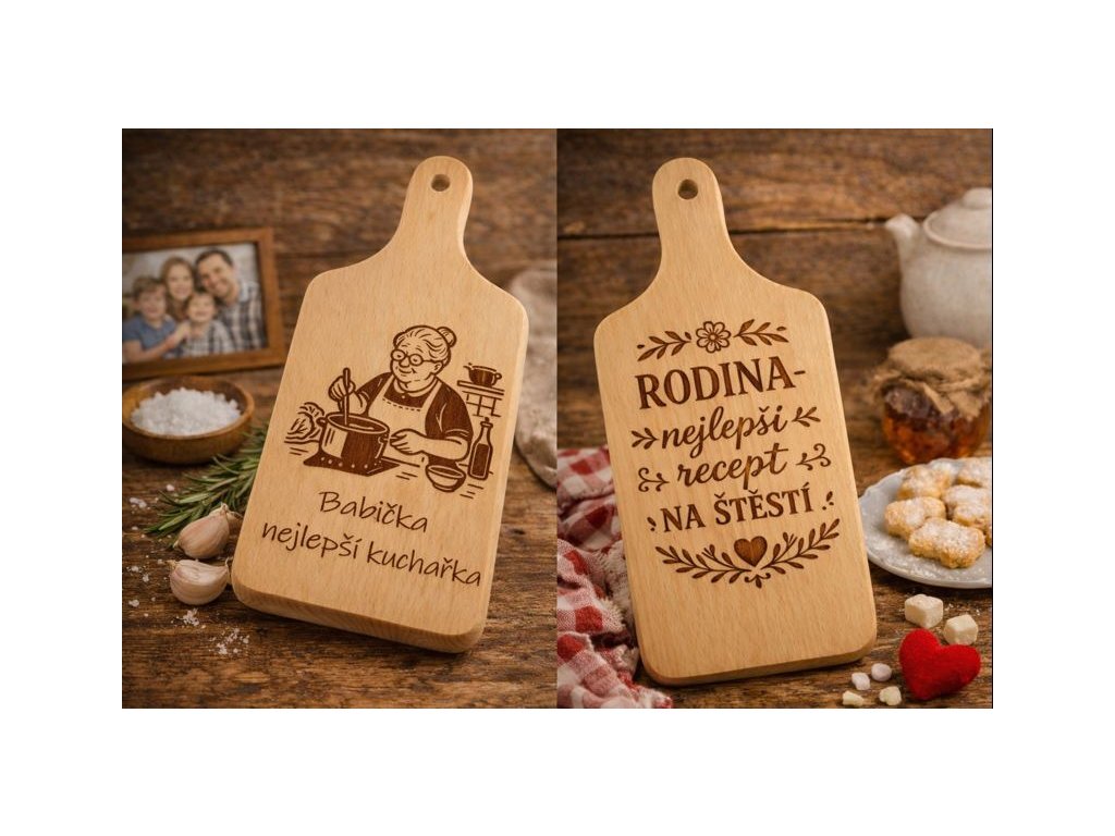 Originální, osobitý a praktický dárek, který potěší každou šikovnou kuchařku i kuchaře! Prkýnko je vyrobeno z kvalitního bukového dřeva a ozdobené gravírovaným textem či obrázkem  Díky tomu se z obyčejného kuchyňského náčiní stává jedinečný kousek s osobním dotekem.