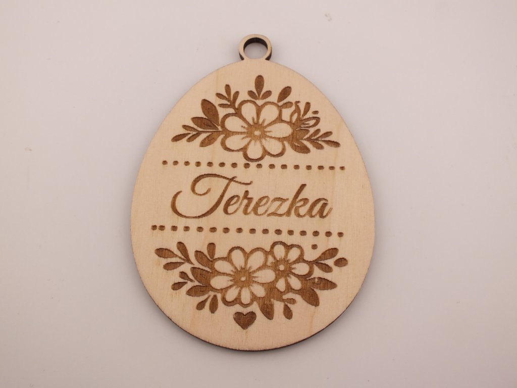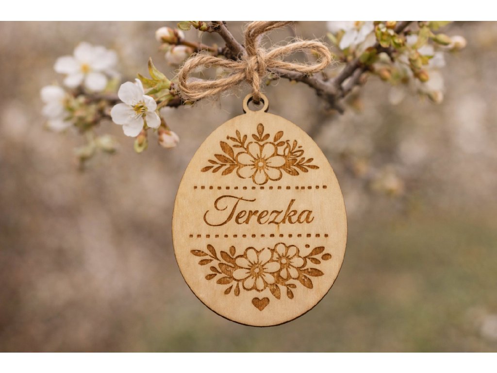 Jemný gravírovaný motiv se zajíčkem dodává dekoraci hravý vzhled a díky možnosti personalizace vznikne originální ozdoba na míru. Vajíčko se krásně vyjímá zavěšené na větvičkách ve váze, na jarním věnci nebo jako drobný dárek do velikonoční výslužky.