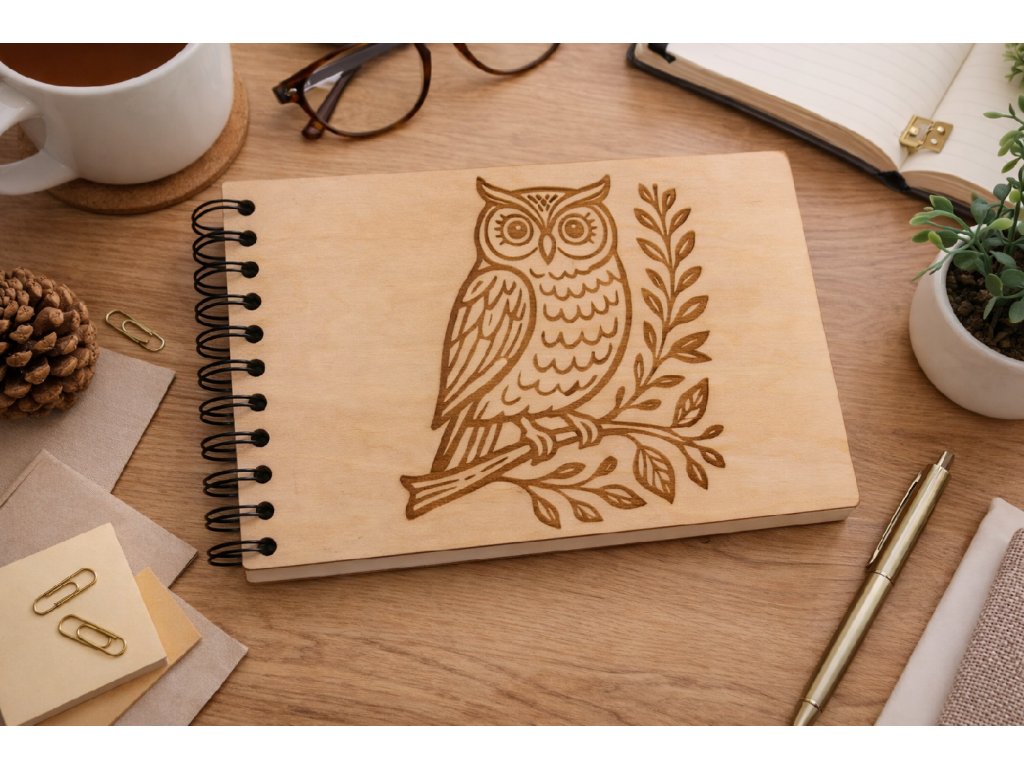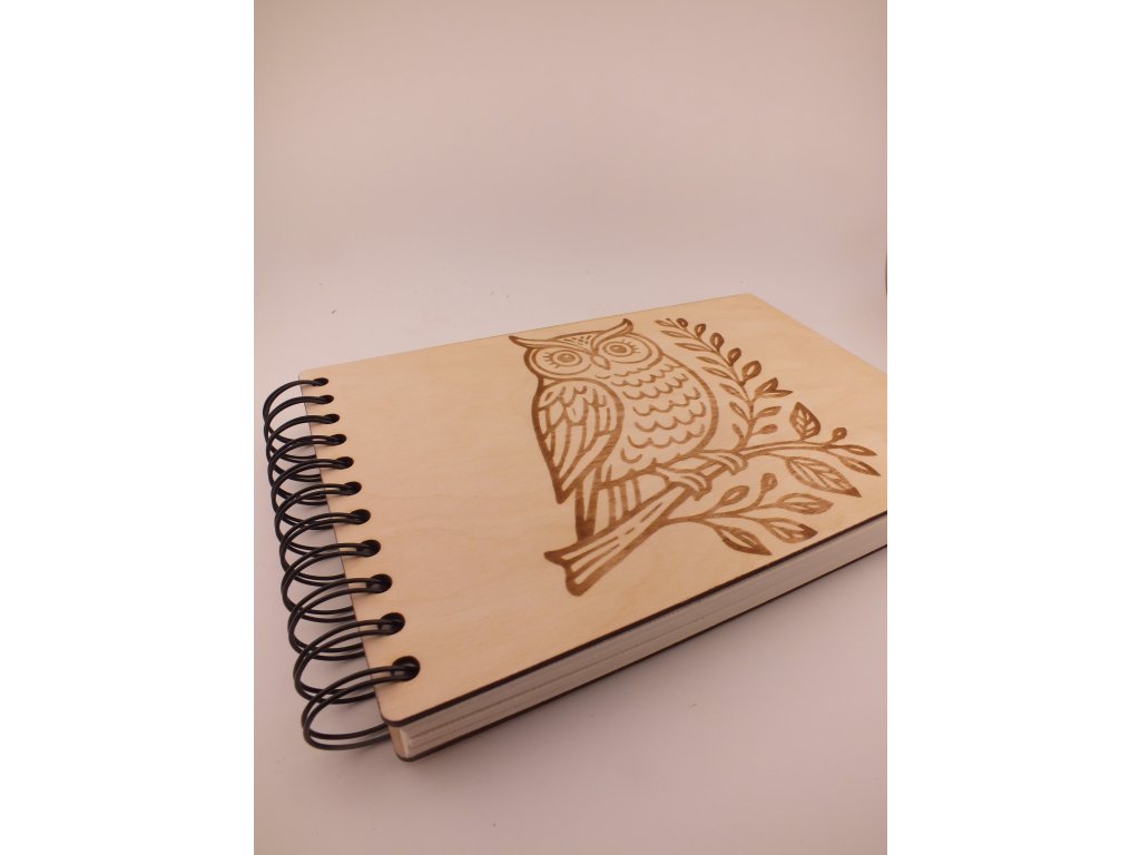 Dřevěný deník s vlastním textem – sovička