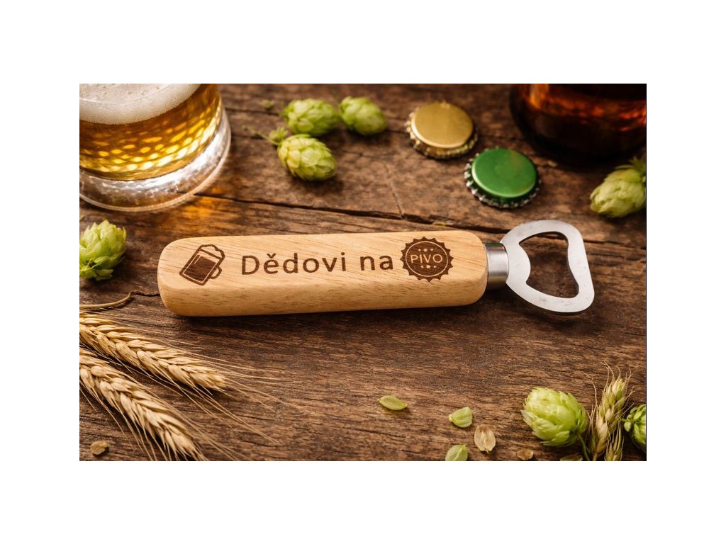 Dřevěný otvírák na pivo s gravírováním – originální dárek pro dědu