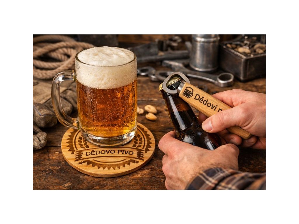 Stylový dřevěný pivní set potěší každého milovníka piva. Set obsahuje praktický otvírák na pivo a dřevěný podtácek, které chrání stůl a zároveň skvěle vypadají. Díky možnosti gravírování jména, textu nebo motivu se z pivního setu stává osobní a originální dárek.