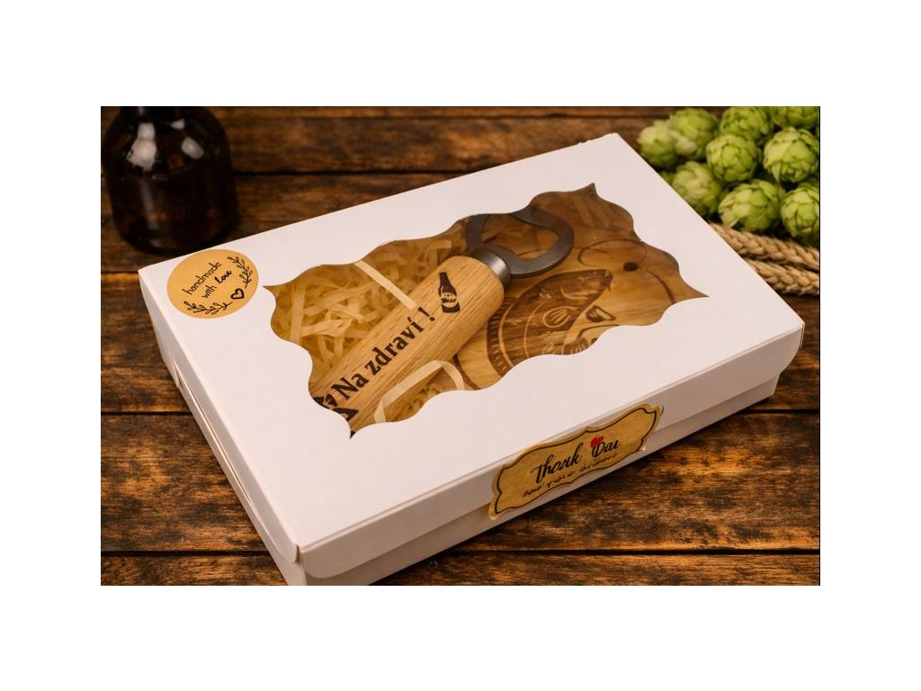 Pivní set je vyroben z kvalitního přírodního dřeva, které je pevné, odolné a příjemné na dotek. Hodí se jako dárek k narozeninám, svátku, Vánocům, pro tatínka, dědečka, kamaráda, kolegu i svědka. Ideální doplněk do domácího baru, dílny nebo ke grilu.