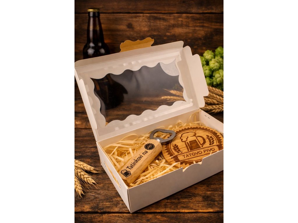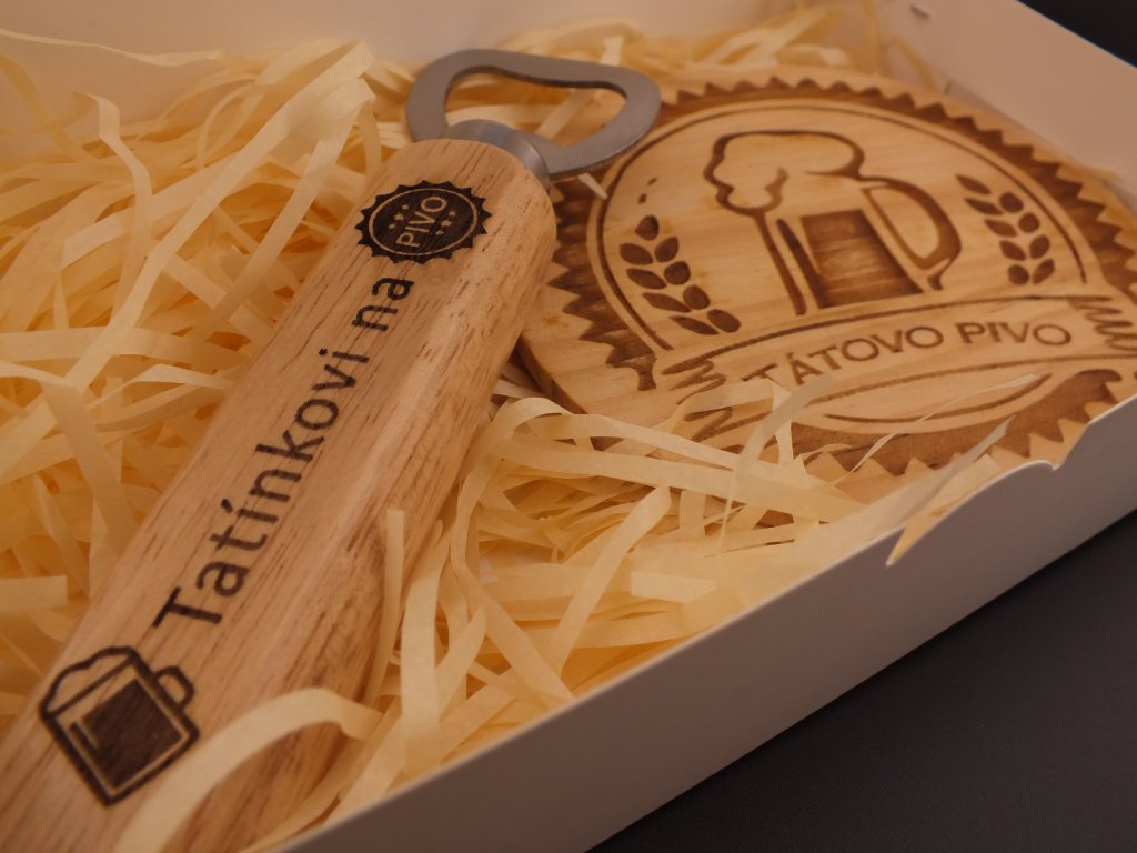 Dřevěný pivní set s gravírováním – pro tatínka