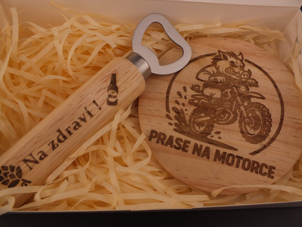 Dřevěný pivní set s gravírováním – pro vášnivé motorkáře