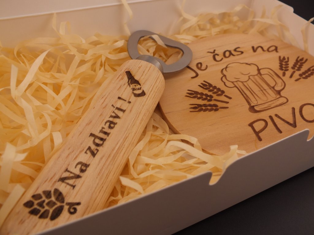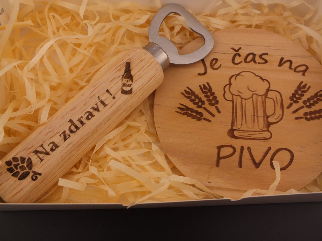 Stylový dřevěný pivní set potěší každého milovníka piva. Set obsahuje praktický otvírák na pivo a dřevěný podtácek, které chrání stůl a zároveň skvěle vypadají. Díky možnosti gravírování jména, textu nebo motivu se z pivního setu stává osobní a originální dárek.