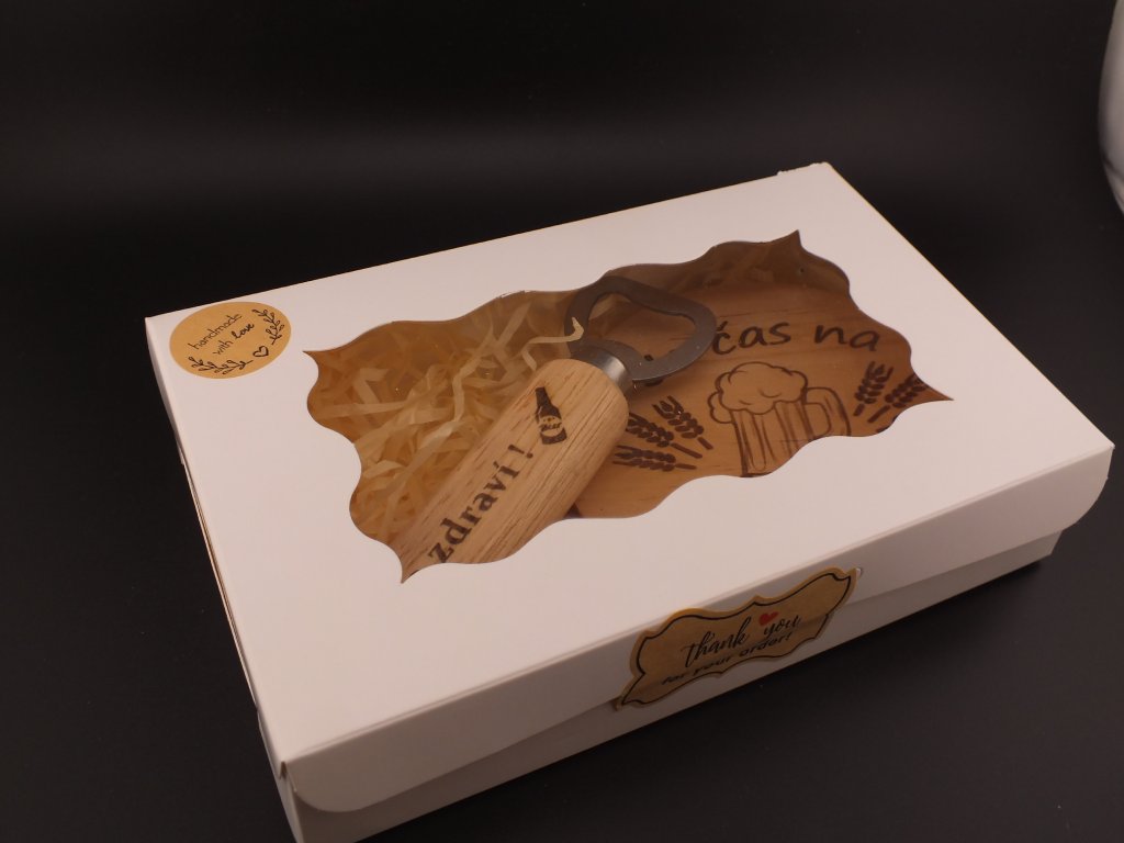 Pivní set je vyroben z kvalitního přírodního dřeva, které je pevné, odolné a příjemné na dotek. Hodí se jako dárek k narozeninám, svátku, Vánocům, pro tatínka, dědečka, kamaráda, kolegu i svědka. Ideální doplněk do domácího baru, dílny nebo keUložit a odejít grilu.