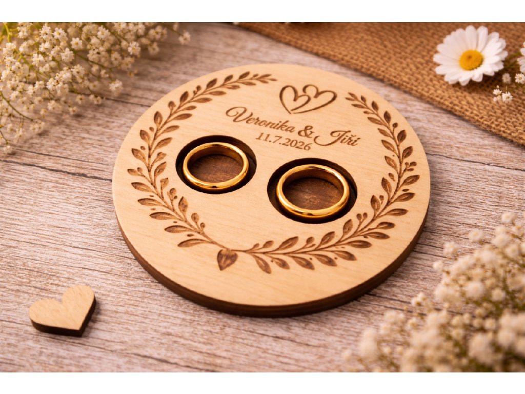 Dřevěná podložka na prstýnky je krásný a originální doplněk pro svatební obřad. Slouží nejen jako praktický podtácek pro snubní prsteny, ale také jako vzpomínka, která vám zůstane navždy.