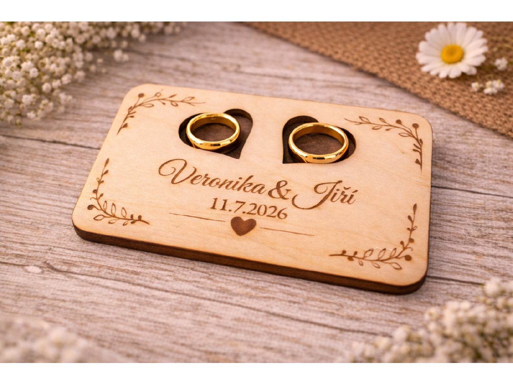 Dřevěná podložka na prstýnky je krásný a originální doplněk pro svatební obřad. Slouží nejen jako praktický podtácek pro snubní prsteny, ale také jako vzpomínka, která vám zůstane navždy.