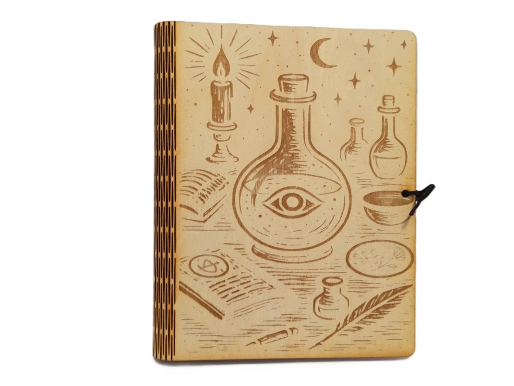 Vítejte v království dřeva, kde se každá stránka stává prázdnou plochou pro vaše nápady, sny a vzpomínky! Tento deník je vyroben z březové překližky, která mu dodává šmrnc, pevnost a k tomu ještě krásné přírodní motivy. Ve velikosti 23 x 19 cm se vejde kamkoli, takže můžete zapisovat své myšlenky na cestách, v kuchyni při vymýšlení nových receptů, nebo klidně i při zaznamenávání svých každodenních dobrodružství.