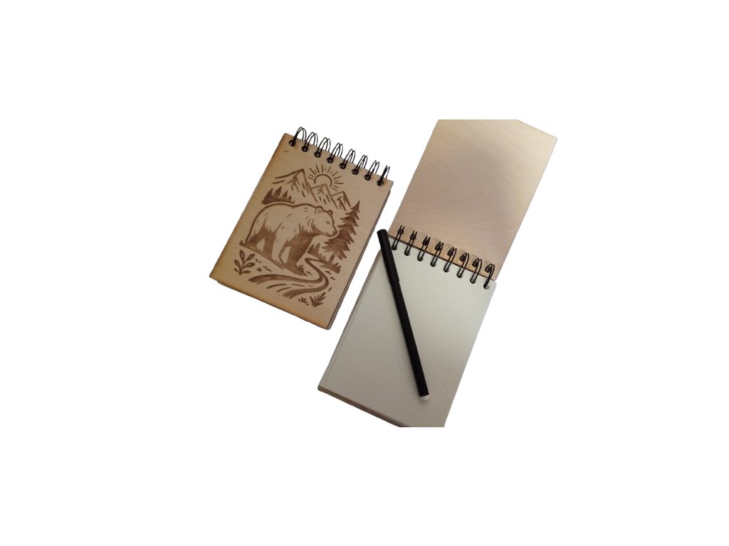 Dřevěný zápisník A6 s gravírováním – medvěd