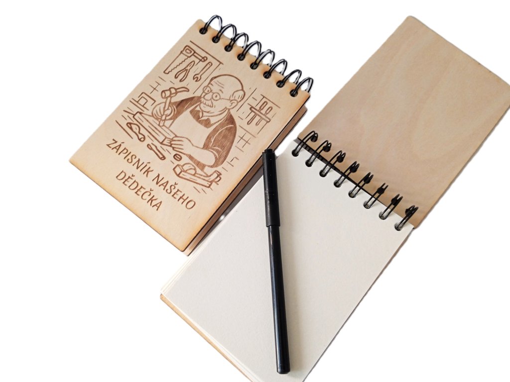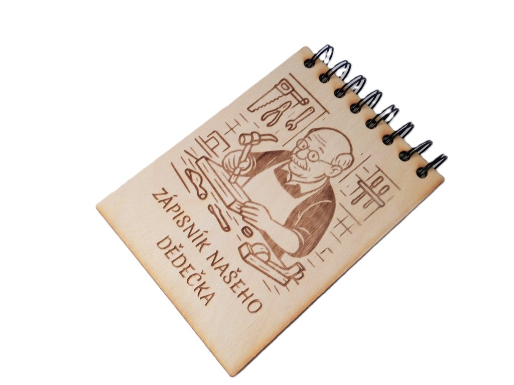 Dřevěný zápisník A6 s gravírováním – pro dědečka
