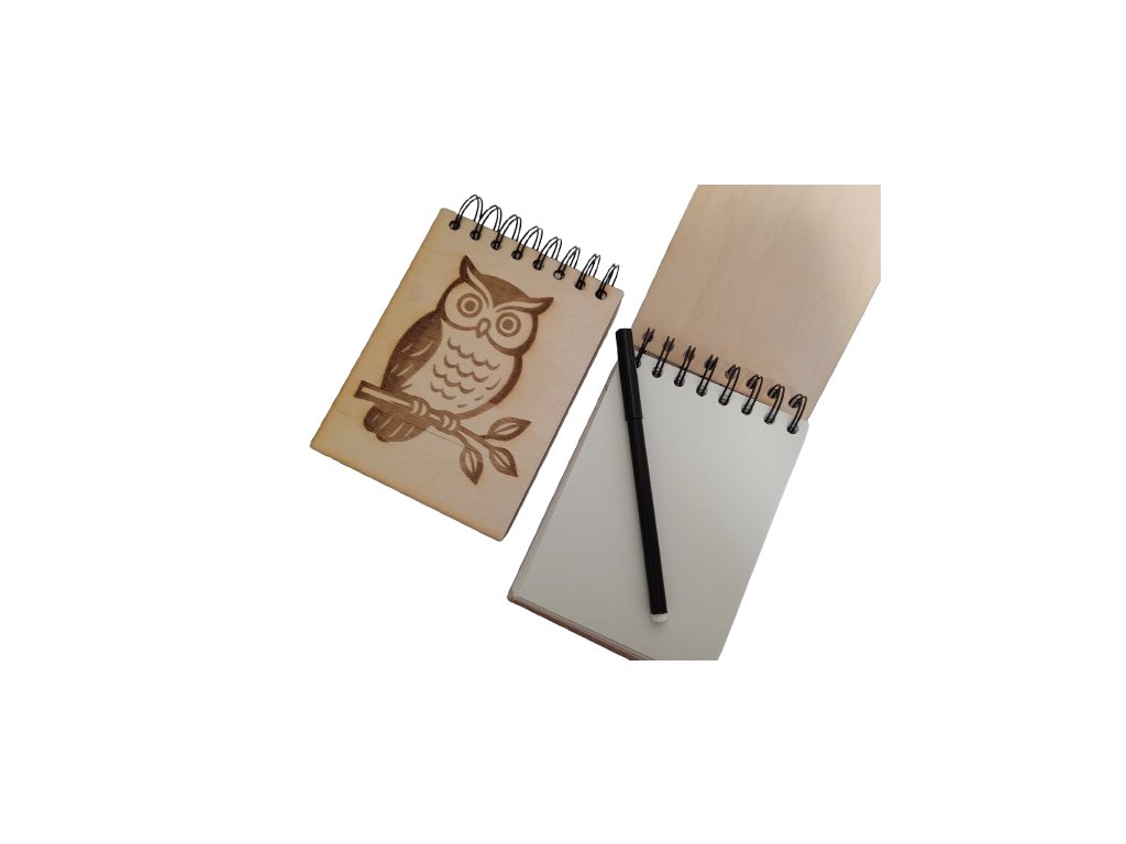 Dřevěný zápisník A6 s gravírováním - sova na větvi