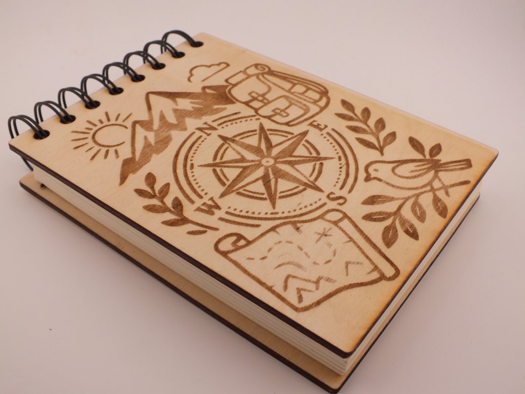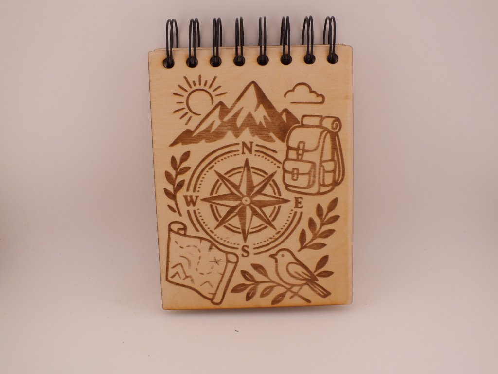 Dřevěný zápisník na hory a cestování